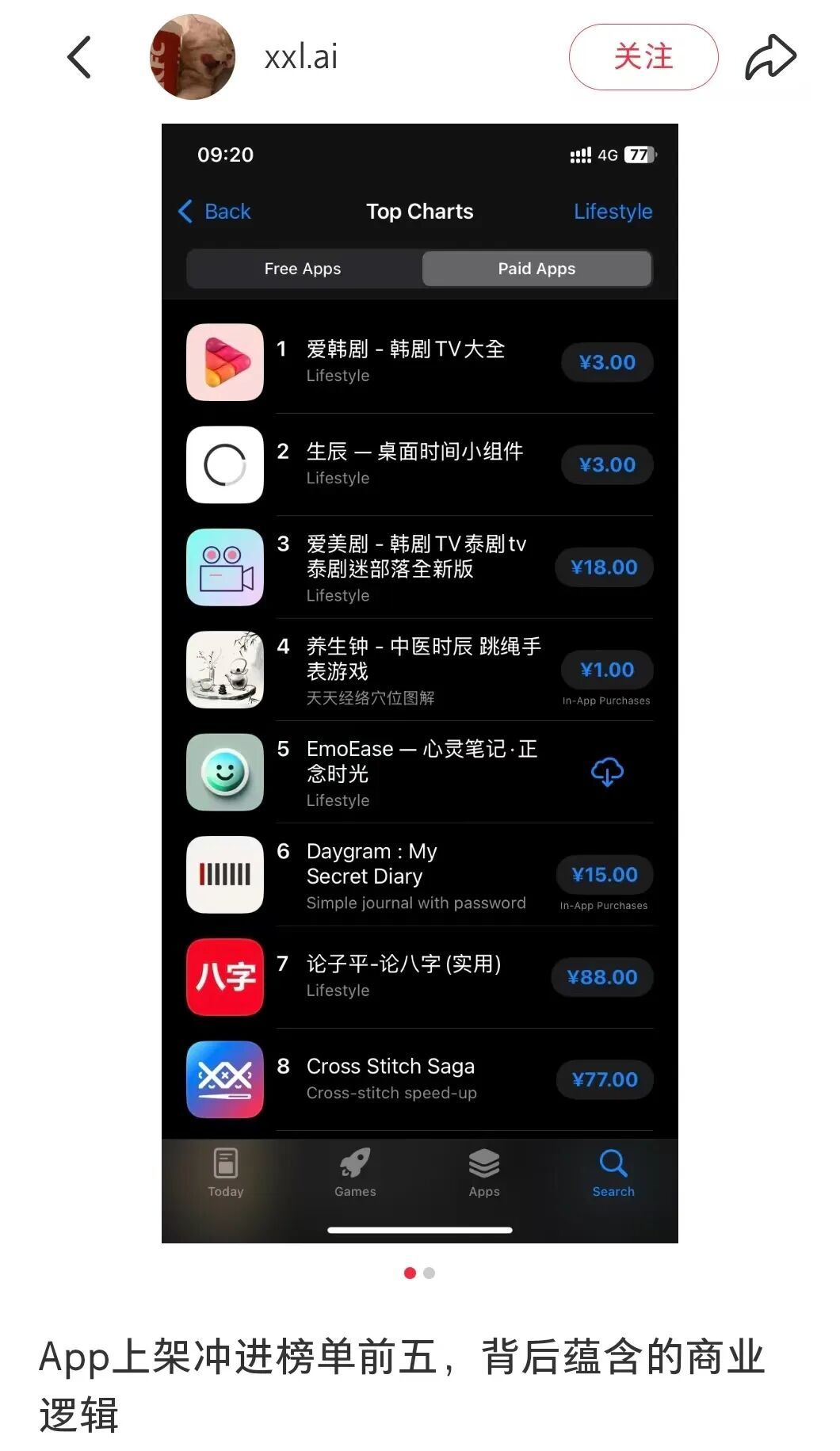 去年,还在读高一的冼星朗,通过小红书接触到Vibe Coding,之后动手实践,用20个小时做出一款AI疗愈应用。正式上架前,他因付不起99美元的苹果开发者年费,在平台上求助。没成想,这条消息被一家知名Agent公司的创始人刷到,对方直接给他打来了这笔钱。上架后,冼星朗的App冲上了苹果工具付费榜第5名。
