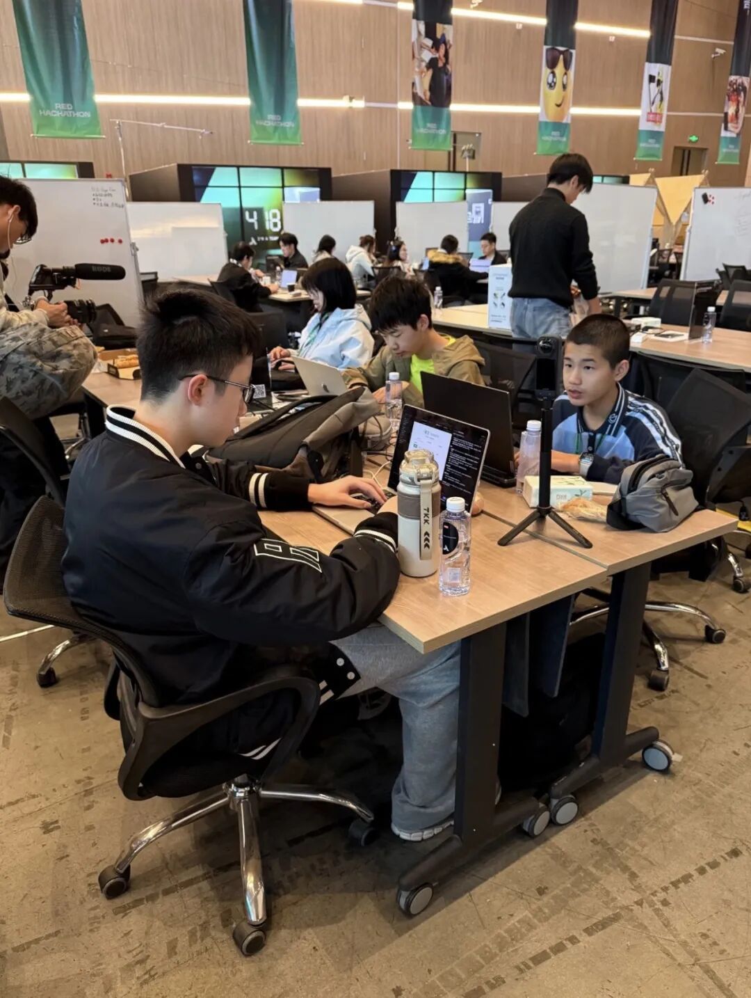 在过往的认知里,黑客松更像是科技精英的硬核竞技场,需要长时间的训练、扎实的编程基础。因而,这些正忙着写代码、调模型、做产品的稚嫩脸庞,在人群中显得有些突兀。